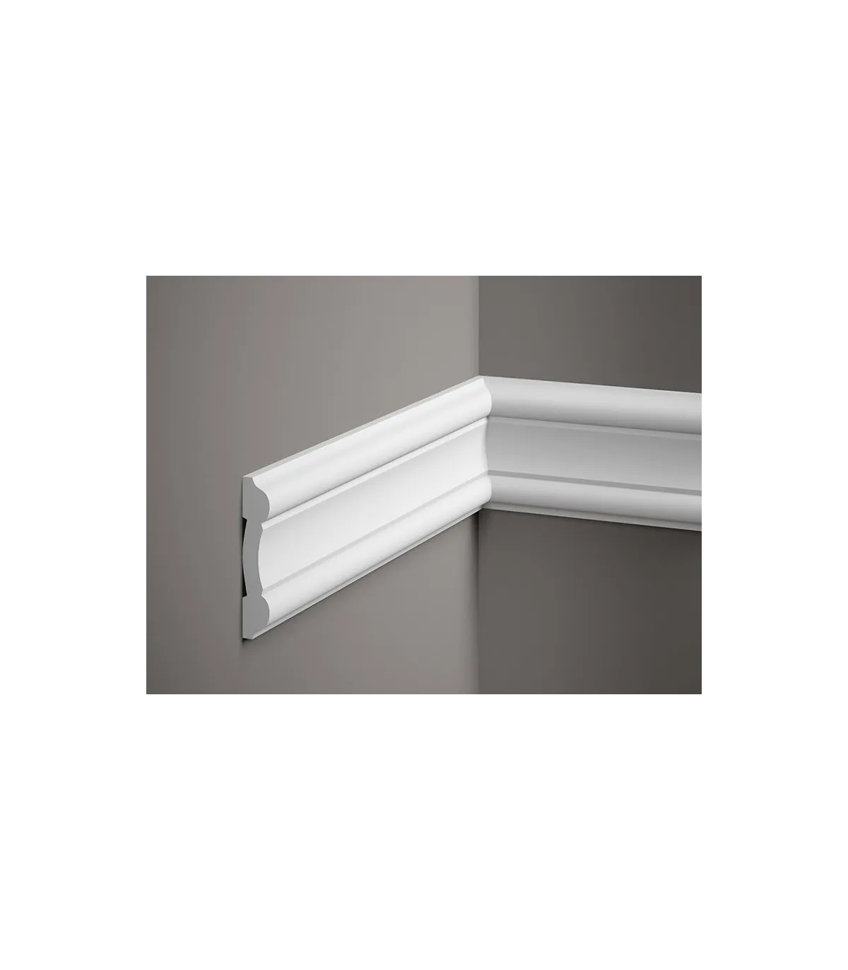 Nástenná soklová lišta MDD339 je minimalistický dizajn s jemnou dekoráciou v strede soklovej lišty. Profil bol vyrobený z extrémne ľahkého ProFoamu, ktorý vďaka svojej hmotnosti umožňuje bezproblémovú montáž v akejkoľvek výške steny. MDD339 bude fungovať ako nástenná a odrezaná lišta, ale aj ako prvok väčšej dekoratívnej kompozície. Soklová lišta má vodotesné vlastnosti, takže nie je problém s jej montážou v interiéroch vystavených neustálemu kontaktu s vlhkosťou. Dobre si poradí aj s UV žiarením – pri intenzívnom slnku sa nedrobí a nežltne. Môžete si byť istí, že aj po mnohých rokoch používania si nástenná lišta zachová svoj bezchybný vzhľad. Dĺžka je 2,0 m.